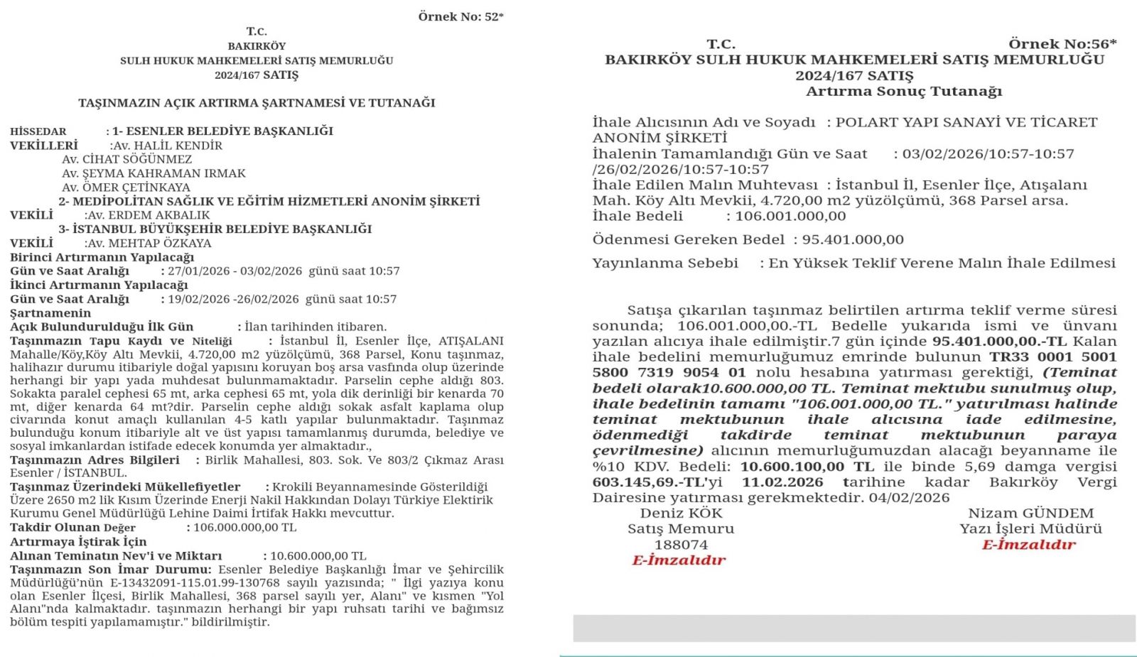 Esenler Belediye Başkanlığı hissedarı olduğu, İstanbul’un Esenler ilçesinde bulunan 4.720 metrekarelik kamu arsası, yargı eliyle yapılan satışla özel bir şirkete devredildi.