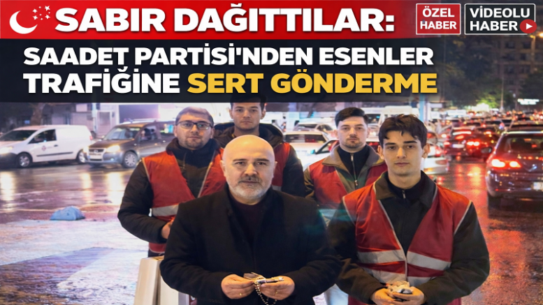 Esenler’in ana caddelerinde oluşan yoğun trafikte mahsur kalan sürücülere tesbih hediye eden Saadet Partili gençler, yetkililere açık mesaj verdi: “Çözüm yoksa, sabır dağıtılır.”